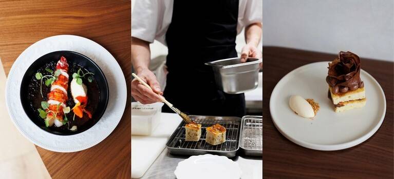 Gourmand que vous êtes, vous craquez pour les petites assiettes à partager, œufs mayonnaise poutargue ou couteaux au pistou, avant de passer aux entrées et vous régalez des fondantes Saint-Jacques crues, citron caviar et algues, ou des champignons poêlés, mousse fumée et crumble de seigle. Pour le plat, c’est viande ou poisson mais, dans tous les cas, gardez une place pour le dessert, que ce soit le Mont blanc de Noé (mousse aux marrons, chantilly vanille, gelée de vin chaud, glace miso et meringue), le millefeuille praliné amande et chantilly ou la tarte chocolat minute et son sorbet au lait. Un petit nouveau qui est parti pour rester.